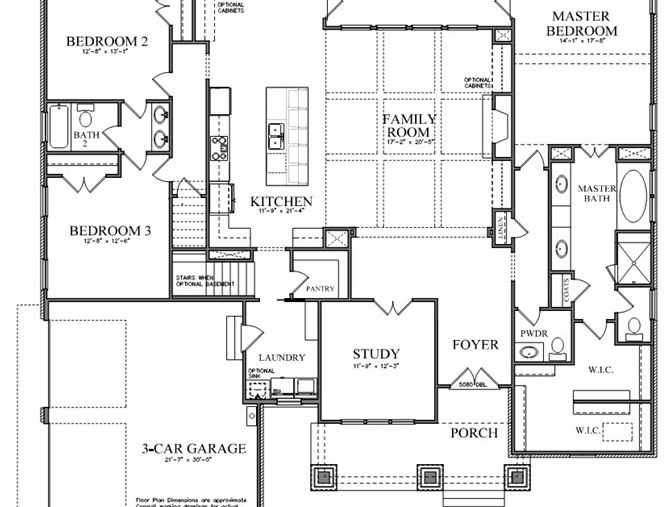 Amazing ranch plan with an open floor plan. Three bedrooms on the main floor with a 4th bedroom or bonus room upstairs. Fireplace in a family room flanked by bookcases. Three-car side entry garage. Covered back porch. It can be built on a slab or basement foundation.